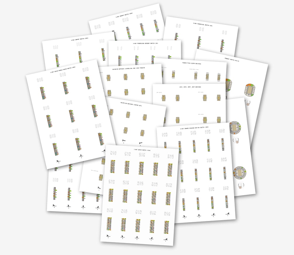 - Switch Mapping Worksheets: A selection of common switch and pickup selector maps to make it easier to plan complicated wiring circuits.