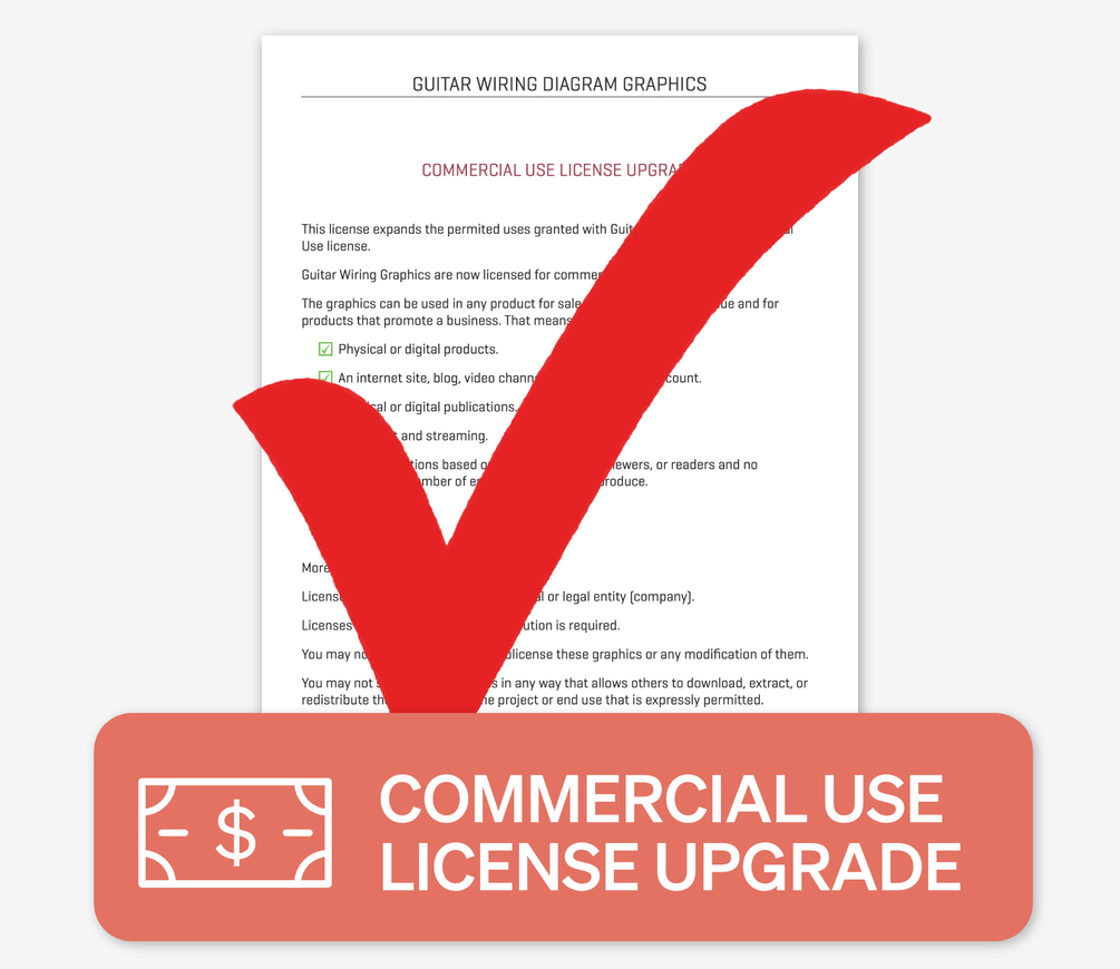 This assumes you already have the Personal Use version of the Guitar Wiring Graphics and wish to expand that license to allow commercial projects.